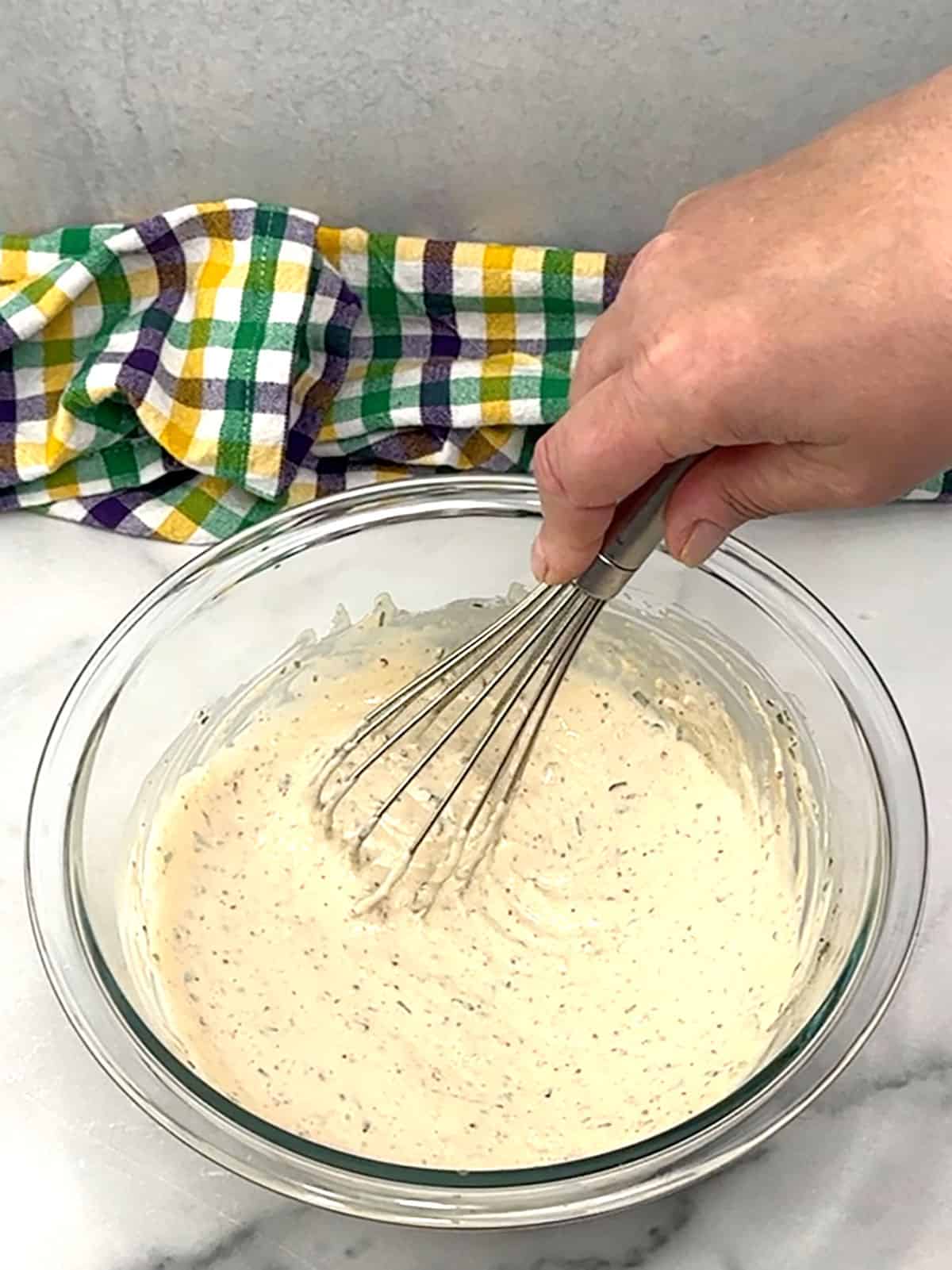 - Use a small whisk to combine all the remoulade sauce ingredients. Cover the bowl and refrigerate for at least 30 minutes to allow the flavors to meld together.