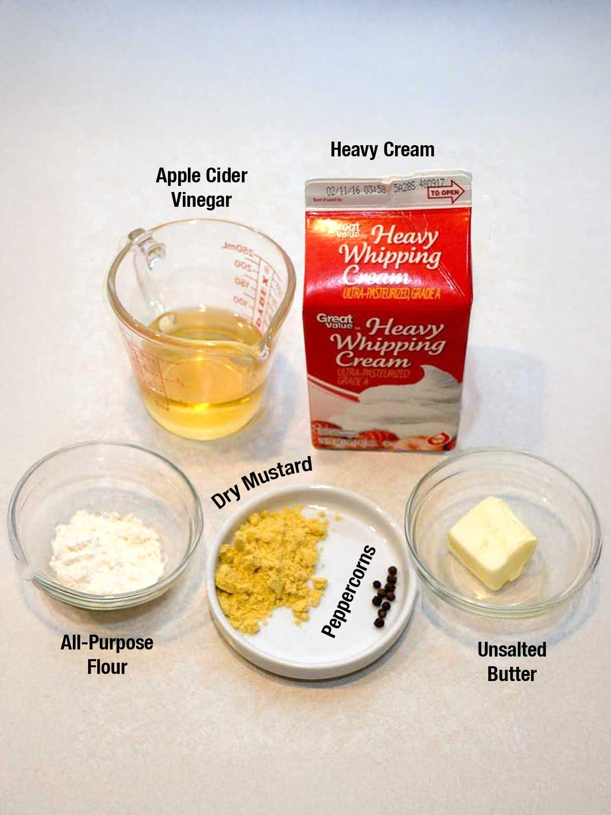 - What You'll Need: In addition to the pan juices, you'll need apple cider vinegar, peppercorns, heavy whipping cream, dry mustard mixed with some water, unsalted butter, and all-purpose flour.