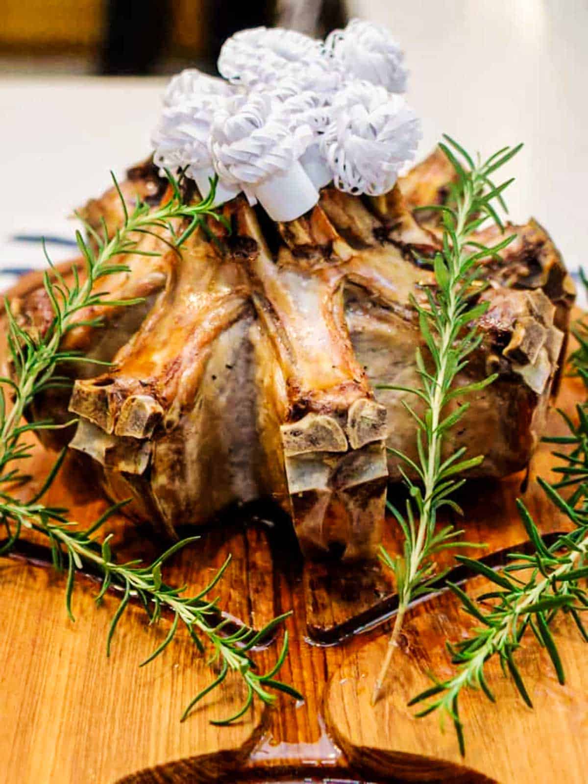- The Pork: I used a 6-pound crown roast of pork prepared by a butcher.