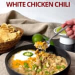 White Chicken Chili is easy, creamy, hearty, and ready in under 30 minutes! Shredded rotisserie chicken, cannellini beans, and green chiles simmer in a flavorful broth enriched with sour cream and cream, making it a comforting one-pot meal perfect for cool nights.
