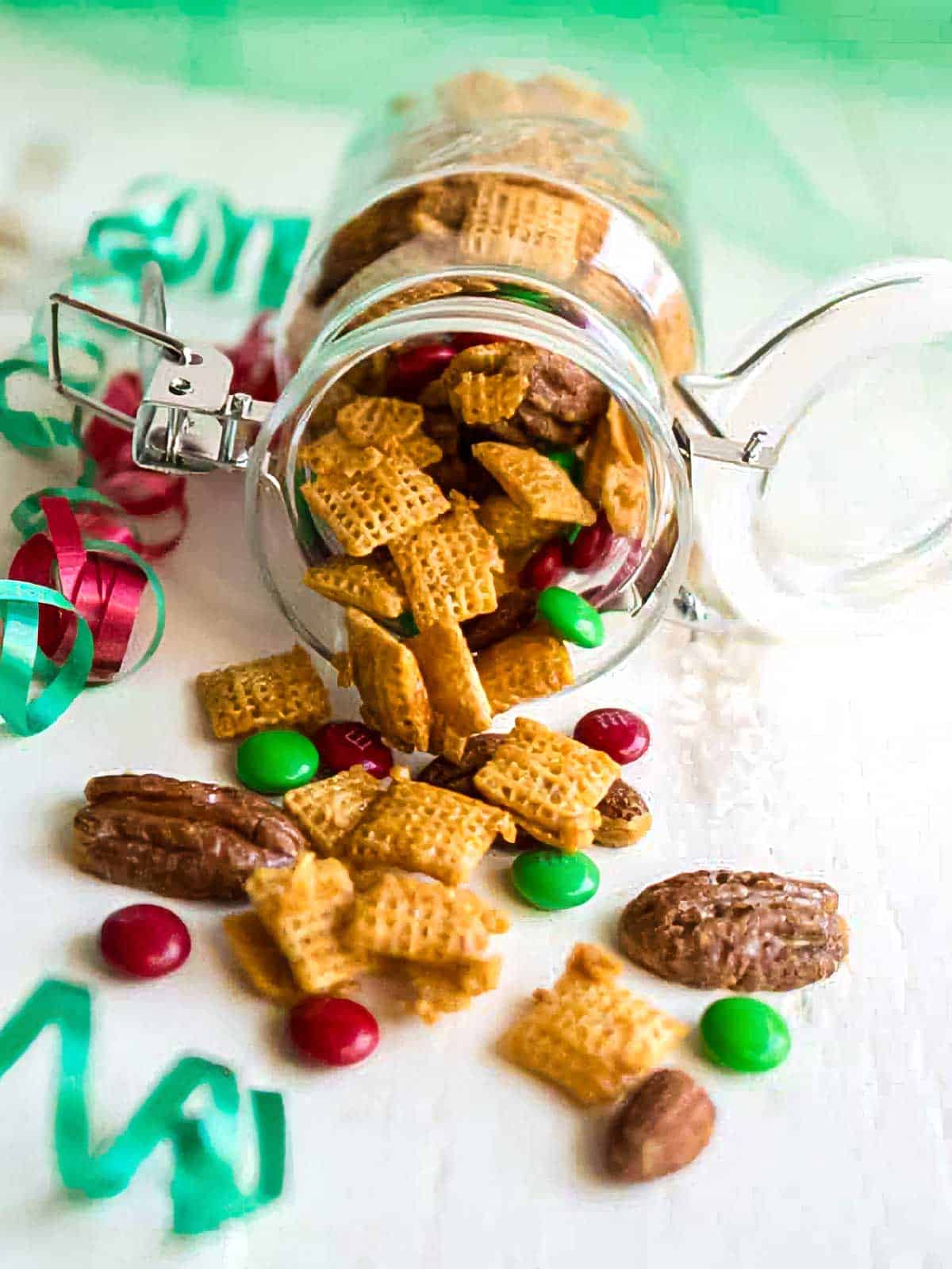 This Holiday Caramel Chex Mix combines crunchy cereal and pecans coated in a rich, buttery caramel sauce, finished with festive M&Ms. It's a dangerously addictive, no-fuss treat perfect for gifting or holiday parties.