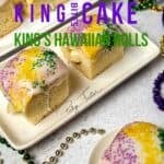 King Cake Bites made with Hawaiian Sweet Rolls are an easy, no-cook Mardi Gras dessert, filled on the side with a cream cheese filling and a cinnamon-sugar interior. They are topped with a hard-setting glaze and purple, yellow, and green sanding sugar for a festive Mardi Gras appearance. This shortcut version delivers classic King Cake flavor without the fuss of making, rolling, and filling yeast dough.