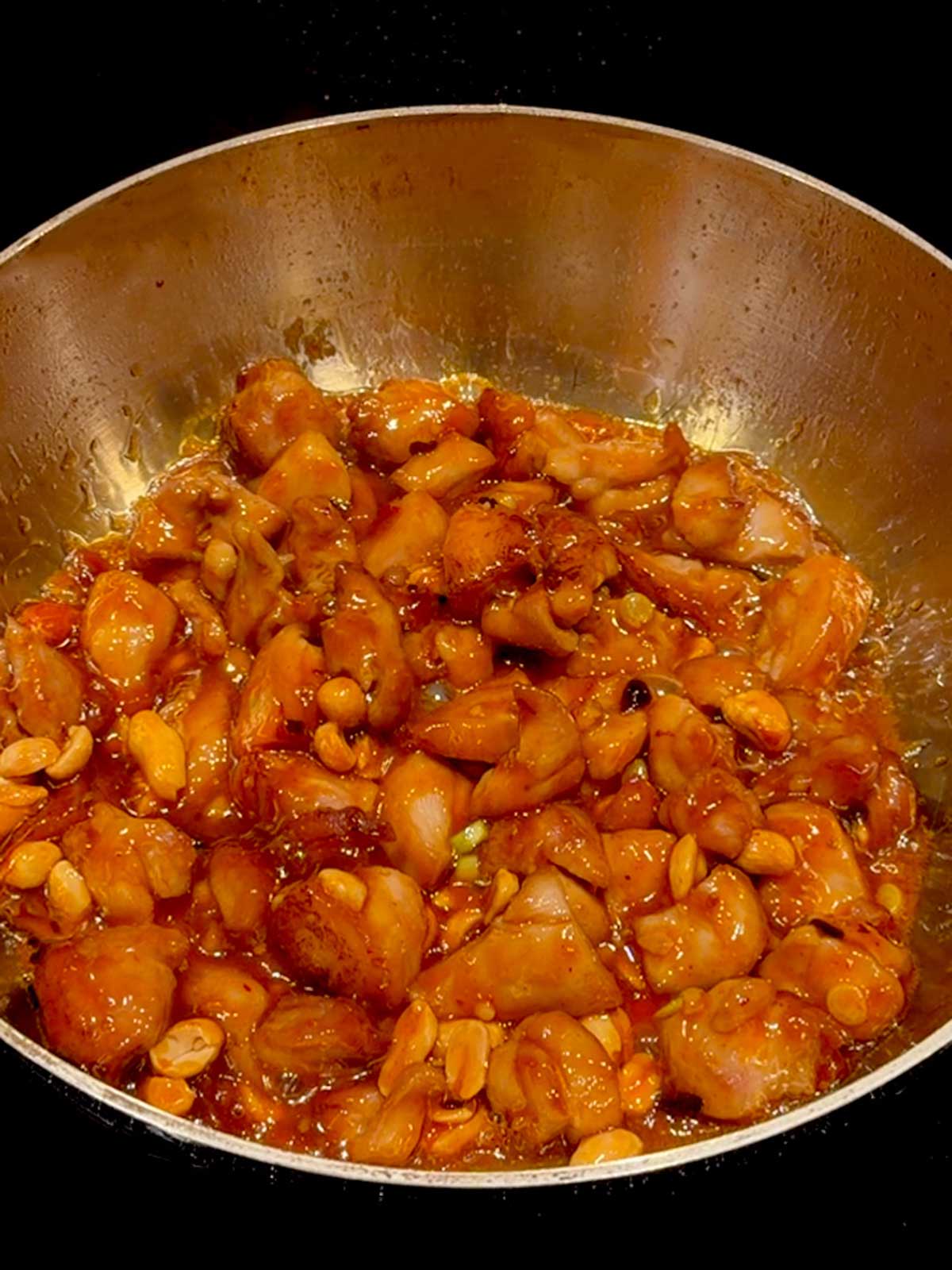 - Finish the Dish: Return the chicken to the pan. Add the peanuts and half of the green onions. Toss briefly, then remove from the heat. Garnish with the remaining green onions and serve.