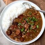 Turn leftover Hoppin’ John into Black-Eyed Pea Gumbo with a darkroux, smoked sausage, and a perfect New Year to Carnival bridge.